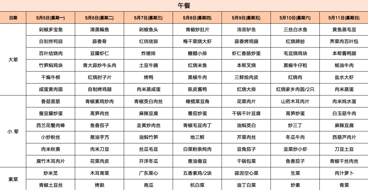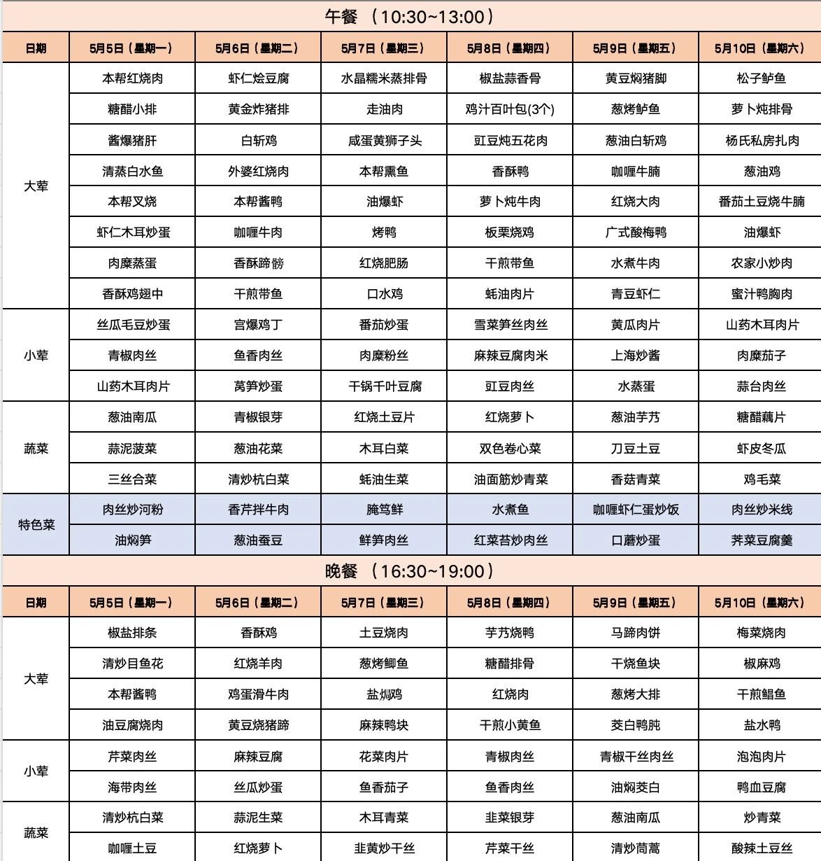 【TOP菜谱】桃浦社区食堂一周菜谱抢先看(5.5-5.11)