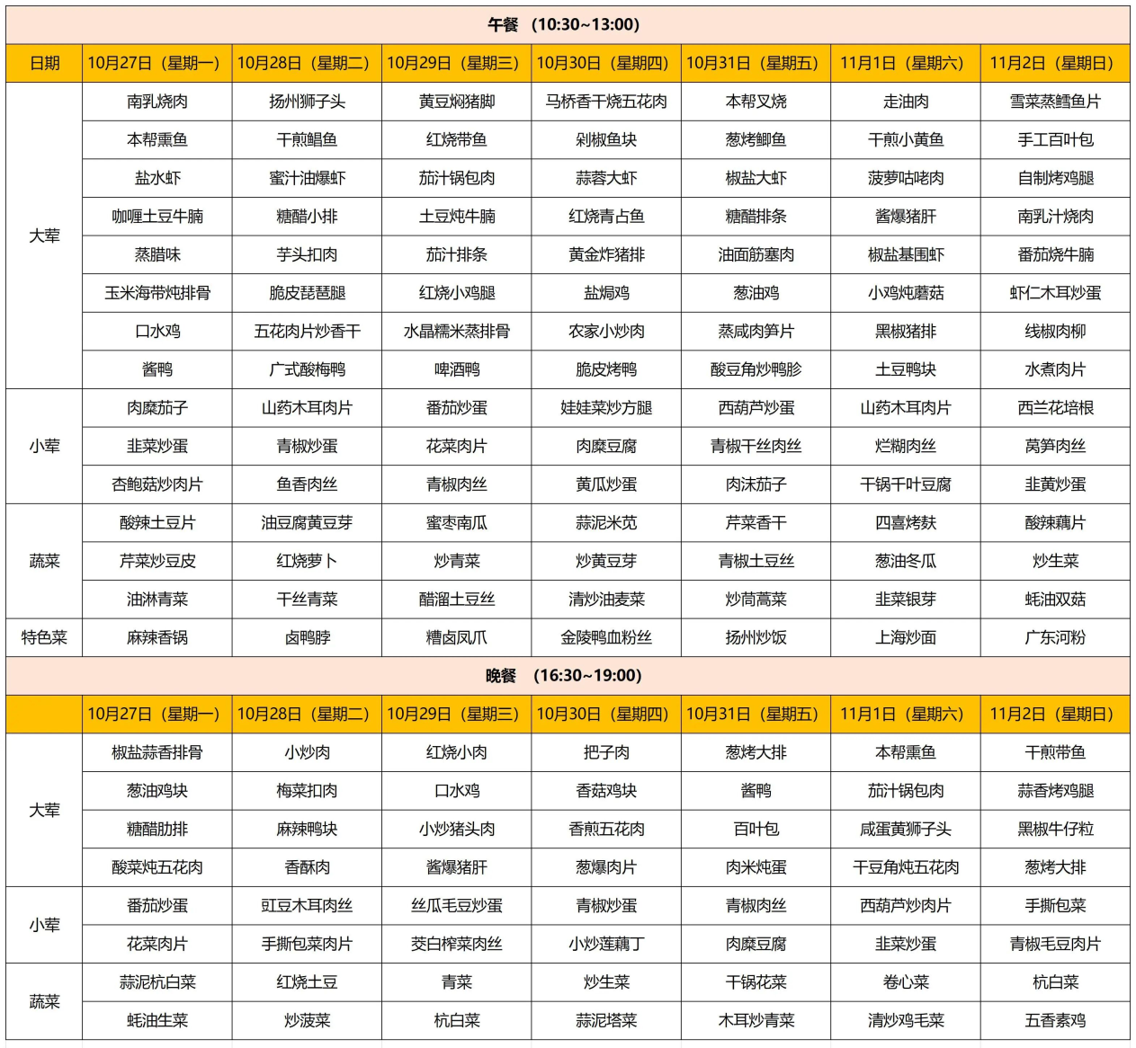 【TOP菜谱】桃浦社区食堂一周菜谱抢先看(10.27-11.2)