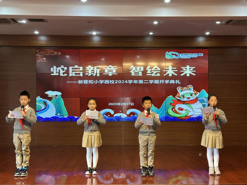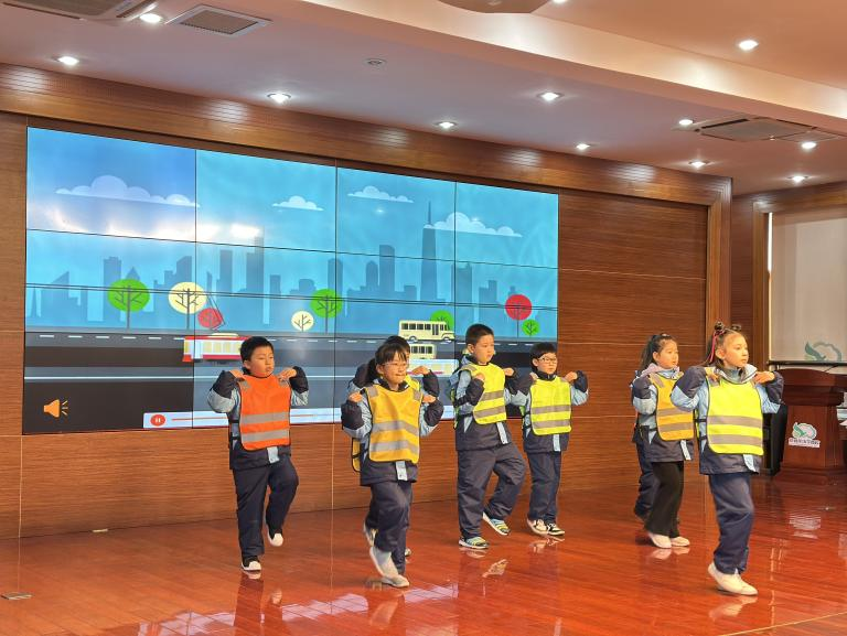 新普陀小学西校开学典礼邀请校外交通安全辅导员为全校师生带来交通安全知识讲座,强化“一盔一带”安全意识。师生共学《交通安全》手势操,将安全知识融入日常生活。