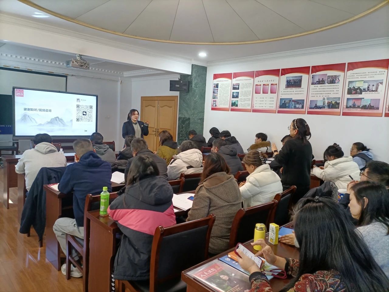 2025年03月25日 来源: 桃浦镇为进一步夯实《普陀区居(村)委参与意定监护事务软法指引》的落地实施成果,精准提升居村干部参与意定监护事务的能力,近日,桃浦镇司法所举办软法赋能基层治理暨“苏河法治大讲堂”专题培训。活动邀请普陀区公证处工作人员陈鉴媛作为培训主讲讲师。桃浦镇辖内50个居村相关工作人员参加培训。