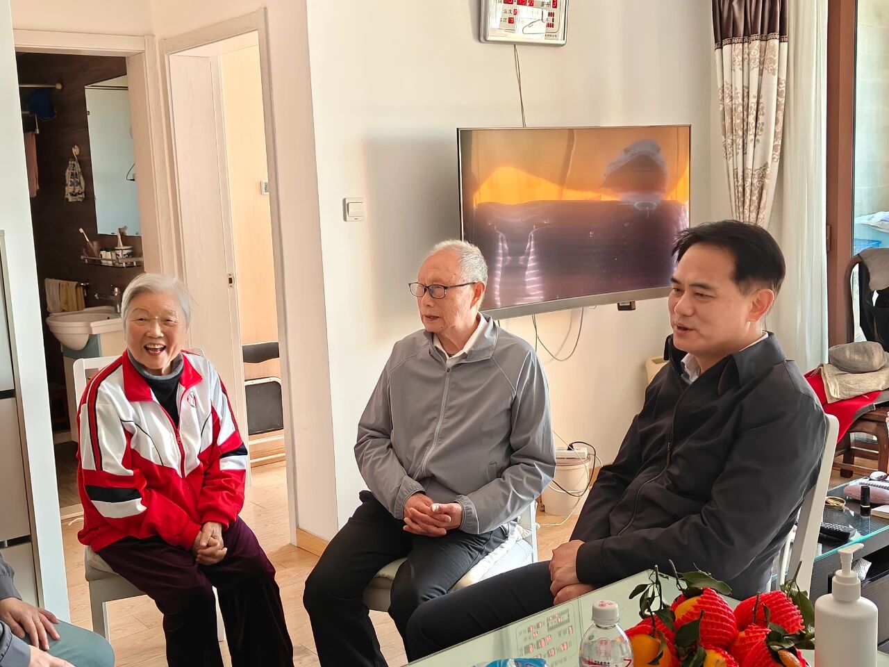 镇党委书记吴晨海走进圣都汇社区居民王坤富老人的家中。王坤富老人今年88周岁,是一名有着66年党龄的中共老党员。交谈中,吴晨海仔细询问了老人的身体状况、日常生活起居以及家庭情况,认真倾听老人的需求和心声。同时,他还叮嘱社区工作人员,要切实履行好服务职责,加强对社区老年人的关心关爱,及时回应老人需求、解决实际难题,让老年群体感受到社区大家庭的温暖。
