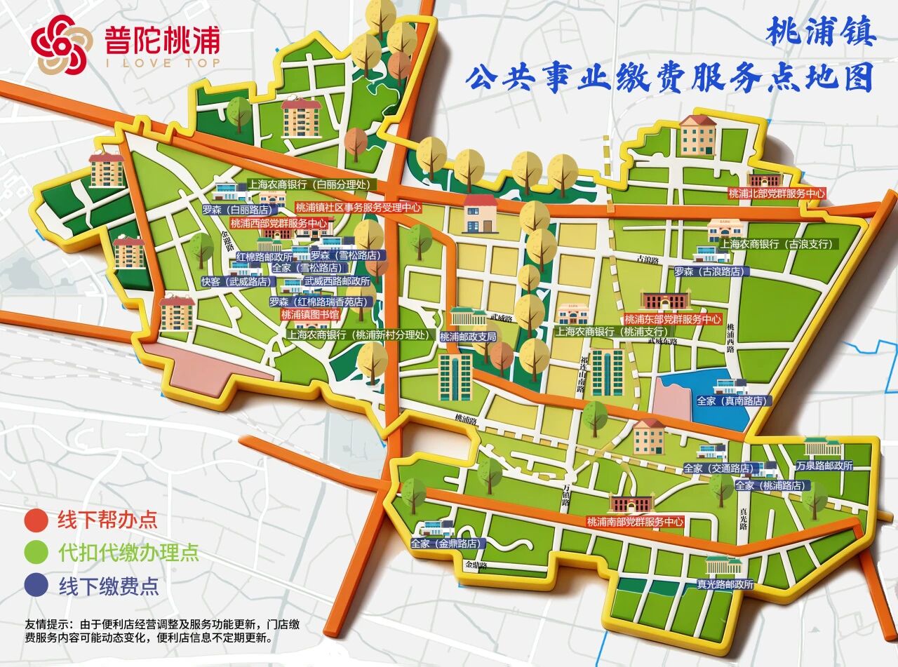 为让老年群众快速找到就近的缴费服务点,桃浦镇精心绘制《公共事业缴费服务点地图》,将全镇范围内的银行网点、邮政网点、便利店、社区服务点等各类线下缴费阵地逐一清晰标注,明确各点位的服务内容和位置信息,让老年群众一图在手,就能精准找到缴费地点,实现就近办、快速办、放心办。