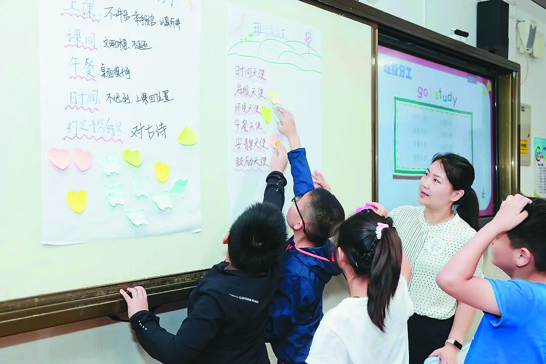 为统筹好家校沟通和班级运行、秩序管理,团区委和区教育局还为暑托班配备了一名管理经验丰富的班主任,辅以大学生、高中生志愿者协同管理,更精细化地应对孩子们的需求。班主任孙颖老师告诉记者,不少同学通过课堂逐渐打开自己,从一开始的不参与到后来的积极融入,孩子们在集体内感受到被关心关爱。