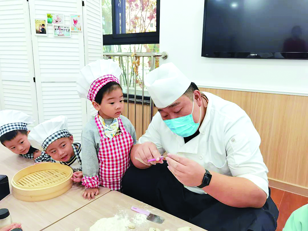 在幼儿园推出的食育课上,阮浩作为特邀讲师,会带着孩子们一起做兔子馒头。“一边做,一边告诉他们一些饮食方面的知识,教他们如何更加健康地去吃和锻炼。”阮浩说,在幼儿园有了更多的学习和展示自己的机会。不仅拓宽视野,提高了技能,也让他在科学育儿、营养膳食的搭配上有了质的飞跃。在幼儿园的实践中,他还从儿童视角出发,和保健老师们共同设计园本食育活动,也学会了尊重儿童的个体差异,兴趣爱好,做有温度、个性化的膳食,不仅全方位考虑到各类幼儿的营养需求,同时做到膳食的色、香、味、形俱佳。
