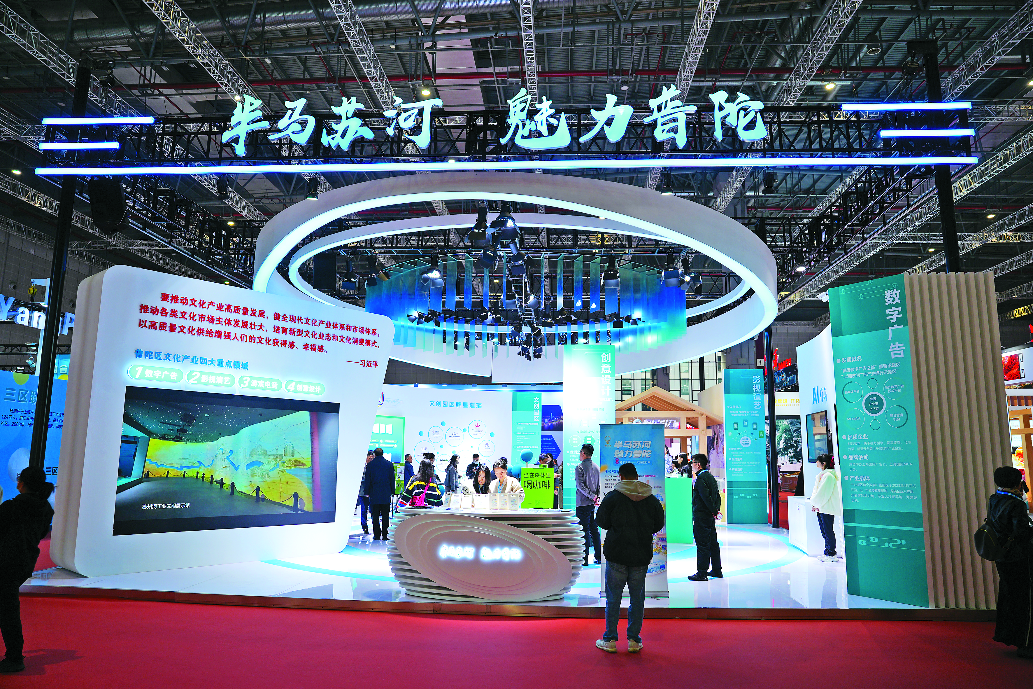 本报讯 11月16日上午,第四届长三角国际文化博览会(文博会)在国家会展中心(上海)盛大开幕。普陀区带着强大的阵容亮相此次盛会,并以“数字广告、影视演艺、游戏电竞、创意设计”四大主题全方位展现区域文创产业发展的生动活力和澎湃动能。