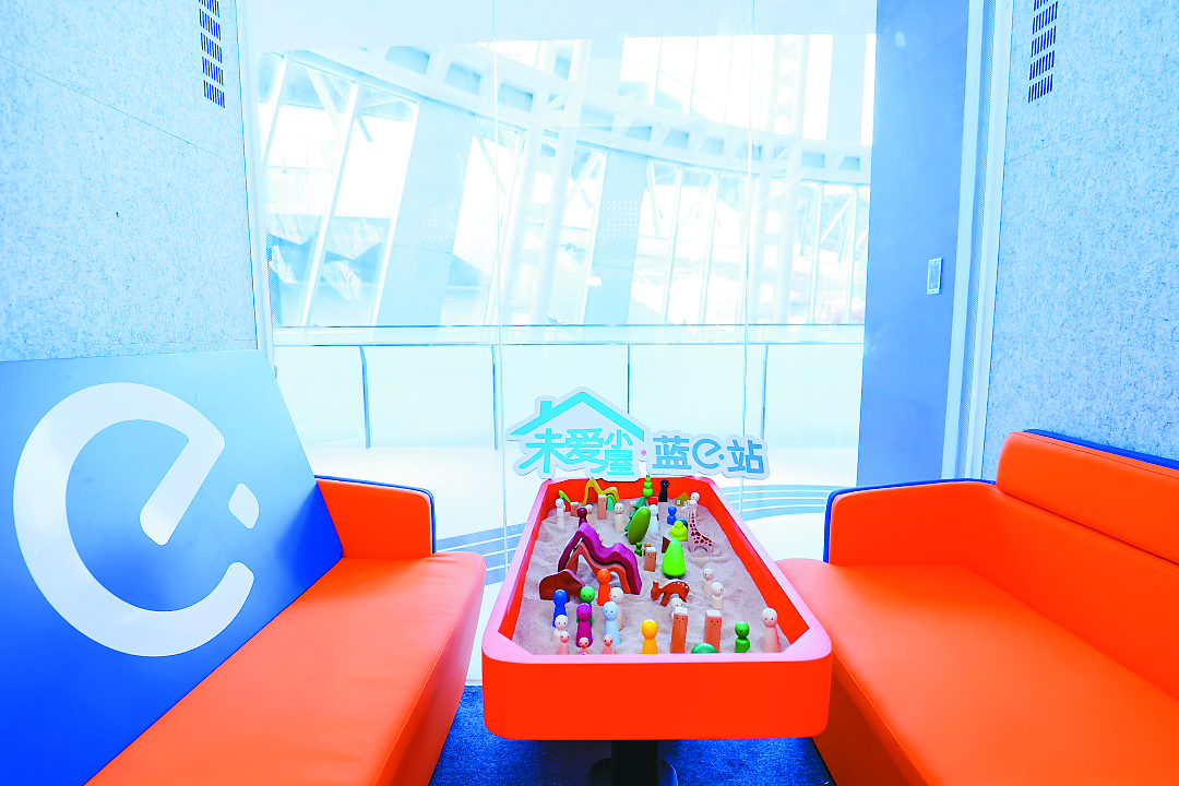 近日,位于饿了么上海总部的“未爱小屋·蓝e站”正式挂牌,这也是普陀区内第8个服务于未成年人心理健康的公益空间(上图)。