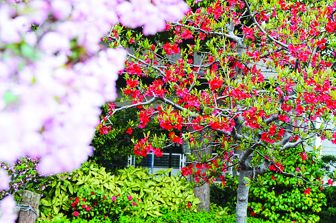 本报讯 三月下旬的申城,满城春色,姹紫嫣红,春光绚烂。特别是各个公园里,满眼都是花的海洋,花的世界,扮靓了城市,美化了生活。无人会得东风意,春色都将付海棠。这其中,素有“花中神仙”“花贵妃”之称的海棠花,也迎着春风摇曳绽放,迎来了一年的最佳观赏期。在上海中心城区唯一以海棠命名的海棠公园内,满园的海棠竞相绽放,争奇斗艳,形成一片片绚丽的花海,吸引市民游客前来游园赏景,打卡拍照,追寻春天的脚步,享受美好时光。