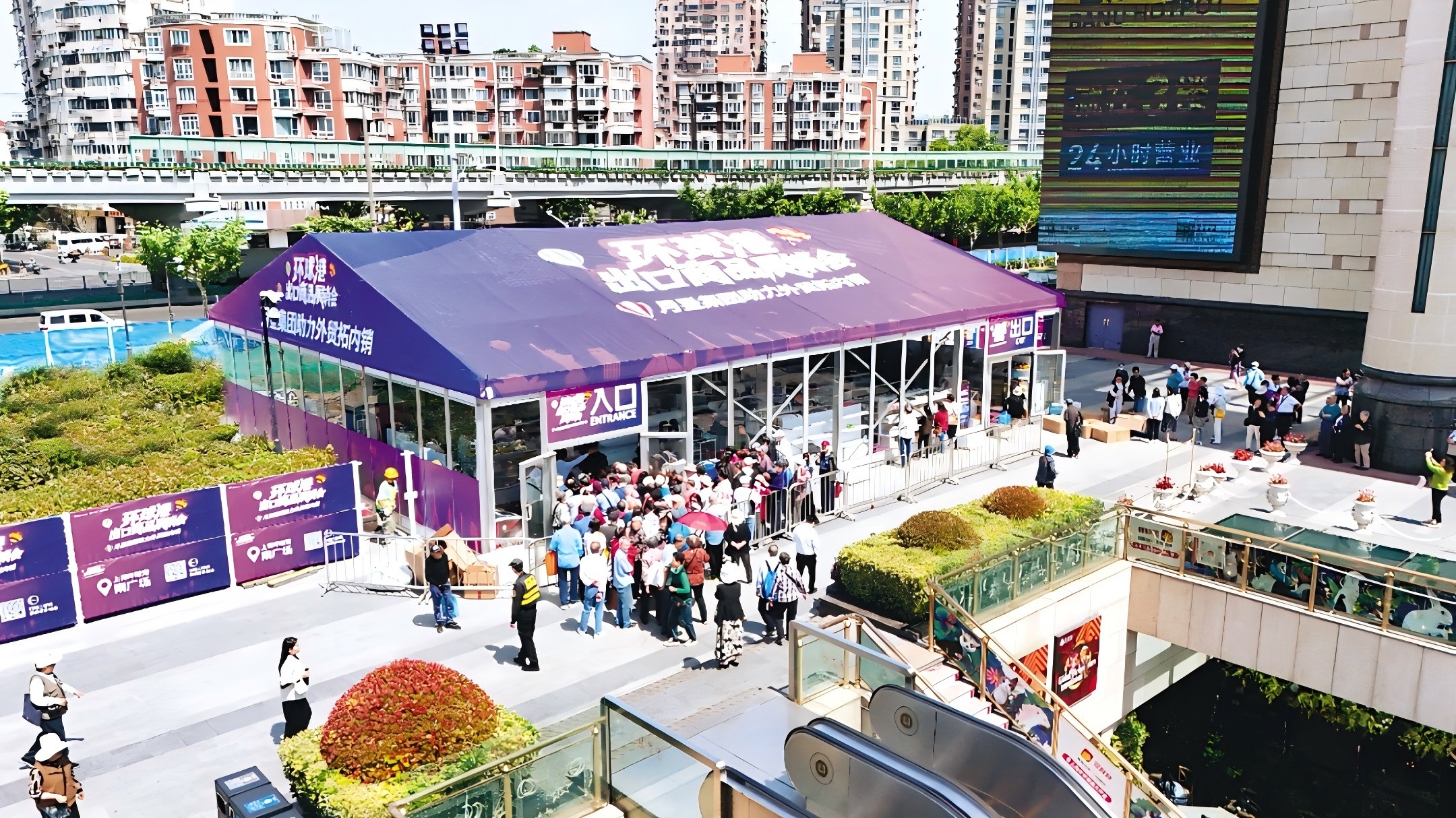 上海环球港出口商品展销会自启动以来便备受关注,吸引了消费者和采购商的目光,为满足更多外贸企业的参展需求,给消费者带来更丰富的购物体验,5月13日起,展销会将迁至户外面积更大的上海环球港南广场举行。参展的外贸企业数量也将进一步增加,从之前的不到20家提升到了50余家,涵盖服装、家居、家用电子、食品等多个领域,近万个SKU(产品)为消费者呈现一场更加多元化的出口商品展销盛宴。