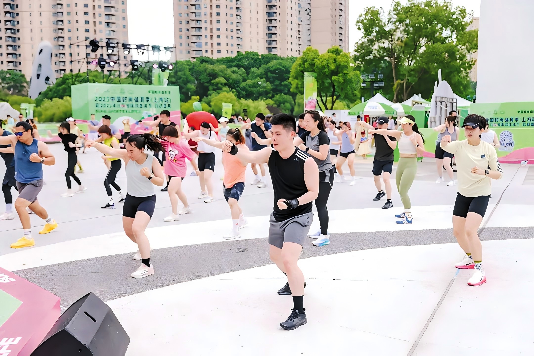 “像瑜伽以及和超级猩猩合作的尊巴、搏击操等课程,招募一开启就爆满,是人气最旺的,”主会场负责人、上海六渔文化总经理张雯瑾观察到,这股运动热潮直接带动了主会场“88部落·苏河市集”的消费活力,近30个潮流运动及生活品牌在此集结。端午邂逅儿童节的双节效应,更催热了亲子与家庭消费。尽管后期受到天气影响,但三天整体参与人次达到1.5万,首日峰值客流约5000人,市民的热情十分高涨。