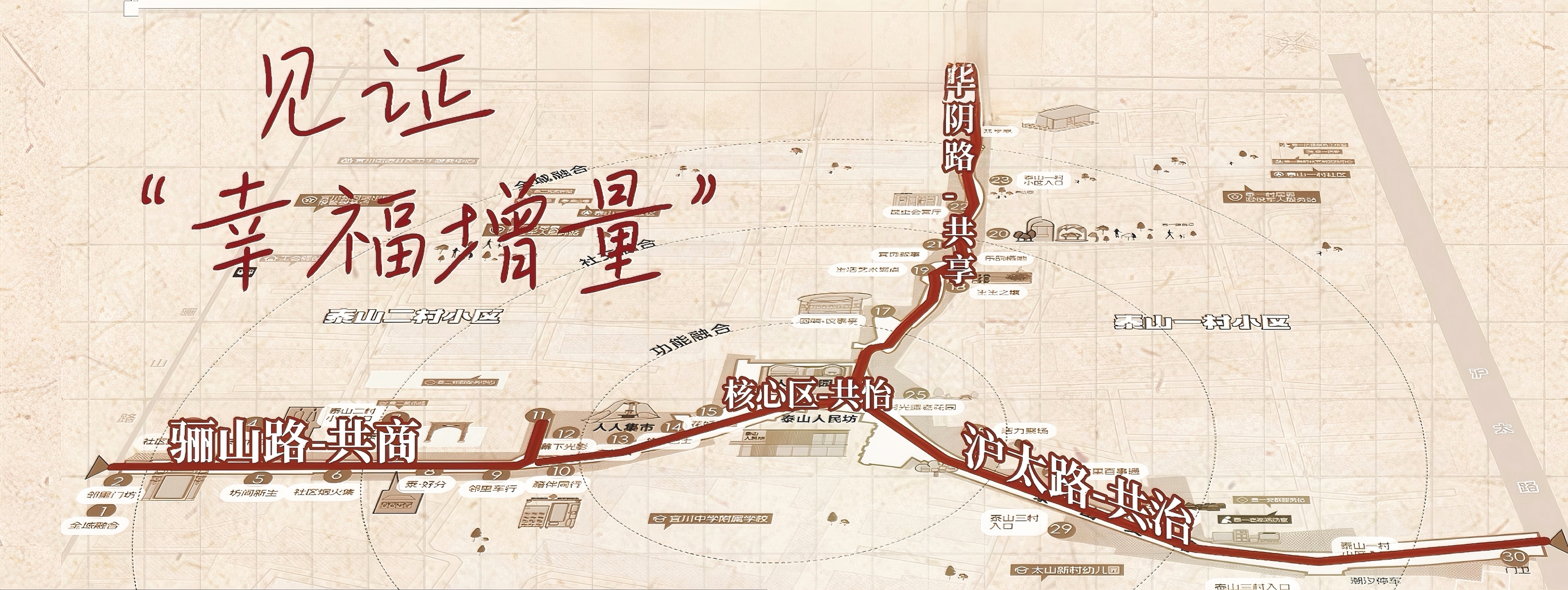 如何更新?“全域融合是我们的答案。”宜川路街道党工委书记卢礼卿一语道破更新的核心。设计团队巧妙利用泰山片区天然的“人”字形道路骨架,将其转化为空间叙事的核心脉络,延伸出“共怡、共商、共享、共治”四大主题空间,并将“共议、共建、共筑、共融”的理念贯穿于更新全流程。
