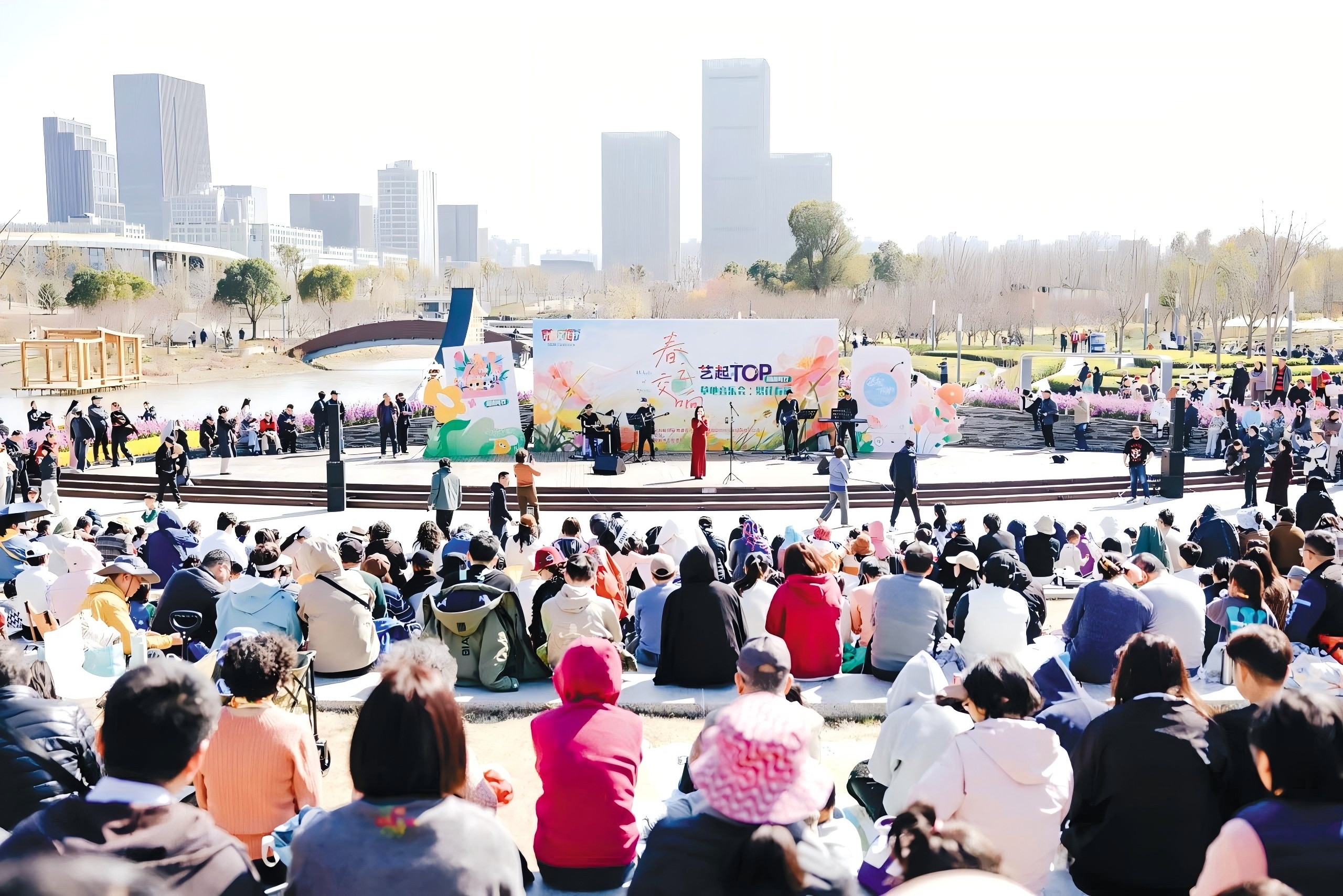春风拂面,郁金香摇曳成海。上周末,Shadow乐队主唱罗斓一首《掌声响起来》点燃全场热情——2026年艺起TOP·周周有戏——“春之交响”草地音乐会的首场活动奏响,吸引上万名市民游客涌入普陀TOP中央公园,在花海中邂逅最美春日。(记者 施旖雯)