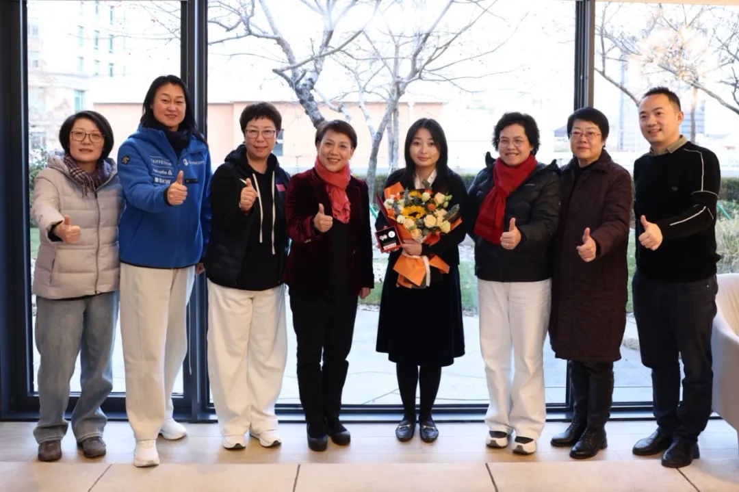 1月9日下午,上海市体育局副局长宋慧、普陀区副区长王珏、区教育党工委书记胡俊、区体育局局长顾薇玲、区体育局副局长刘丽娜、江宁学校校长吴庆琳一行来到上海棋院慰问普陀区培养的国际象棋运动员居文君,祝贺她达成个人慢棋、快棋与超快棋三项世界冠军的大满贯。