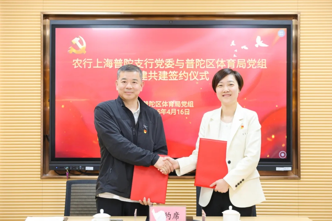 4月16日,普陀区体育局党组与农行上海普陀支行党委举行党建共建签约仪式,旨在通过建立共建合作关系,进一步凝聚双方合力,共同为区域高质量发展注入新动能。