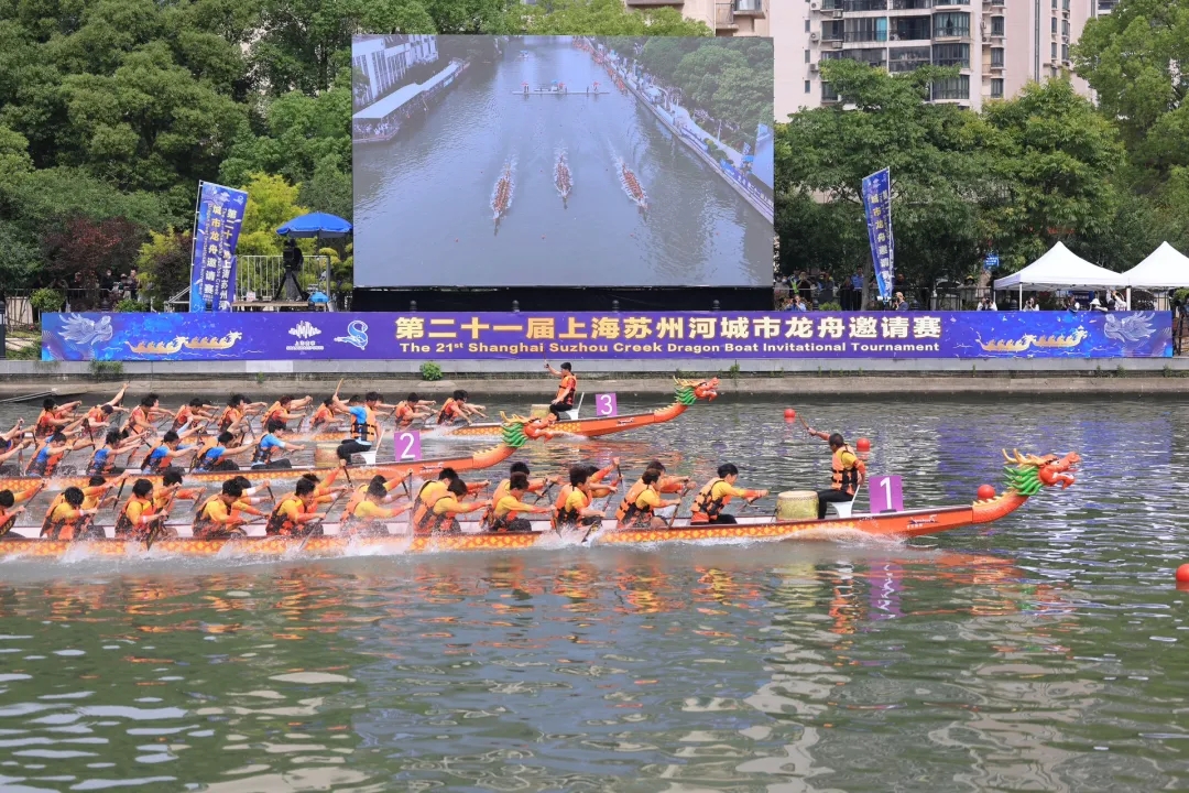 5月25日,第二十一届上海苏州河城市龙舟邀请赛在普陀区中远两湾城·梦清园水域落下帷幕。来自不同国家和地区的58支龙舟队在普陀“半马苏河·七彩秀带”的滨水画卷上,共同描绘“龙耀苏河、向新而行”的热闹景象。