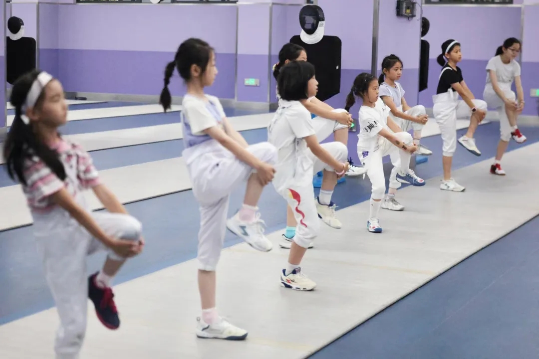 下午两点,普陀体育中心的击剑馆内是一番火热的景象。清脆的金属交击声与教练的哨声此起彼伏,数十名小剑客身着雪白剑服,全神贯注地重复着每一个进攻与防守的动作。