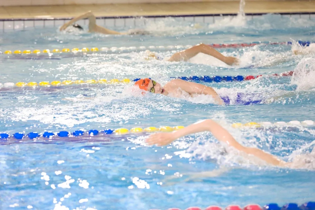 在华东师范大学游泳馆内,另一群普陀小将正以同样的热情投入训练。碧波荡漾的泳池中,队员们如飞鱼般穿梭,水花飞溅间,是他们对速度与耐力的极致追求。