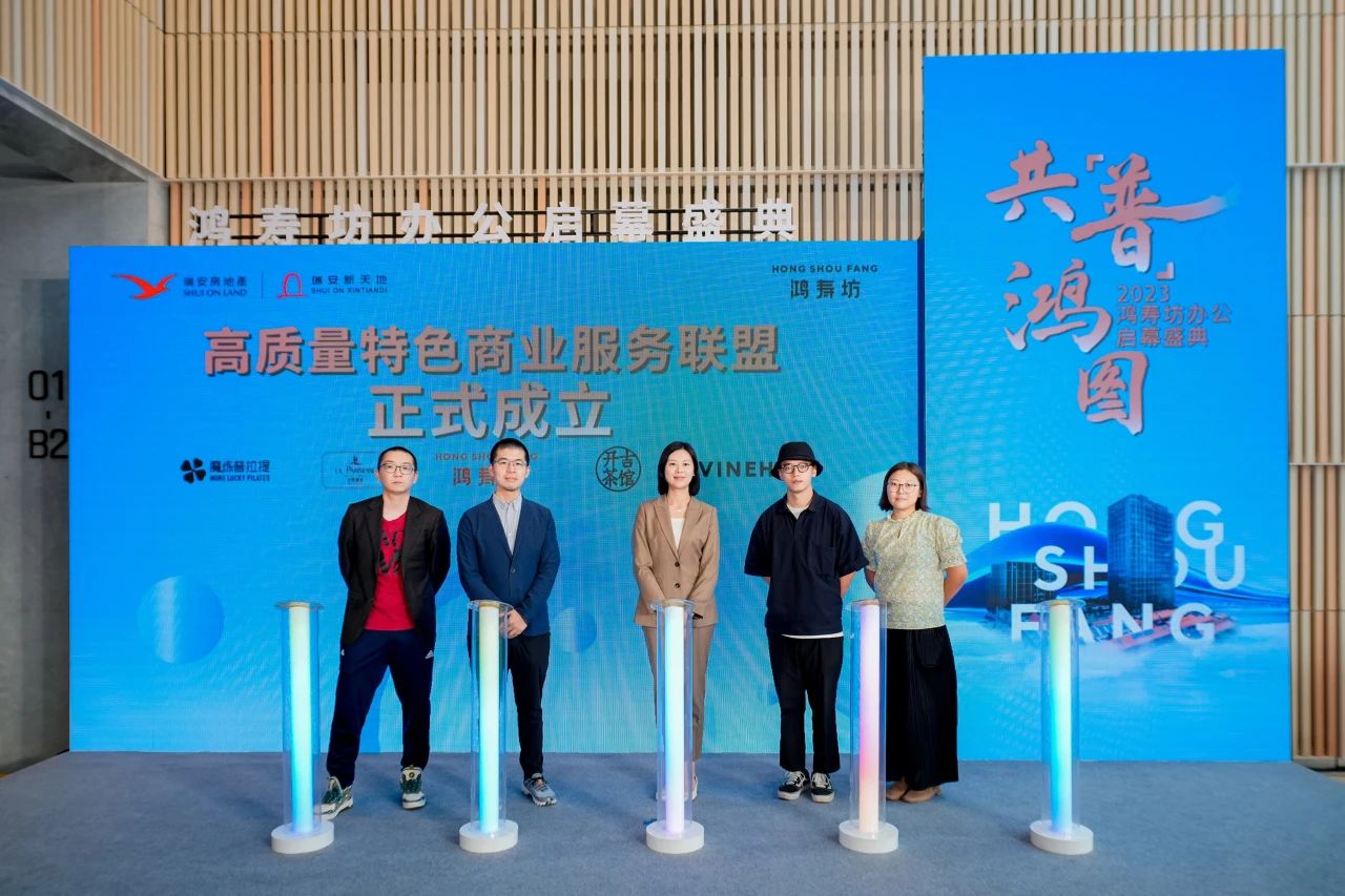活动当天,鸿寿坊与开吉茶馆、酒云VINEHOO、巴黎蜜语、魔练普拉提商户代表共同成立高质量特色商业服务联盟。未来将以更具特色的服务和产品,打造差异化的商业气质和体验,满足白领及周边居民的消费需求,打造商办融合、工作与生活平衡的社区样本。
