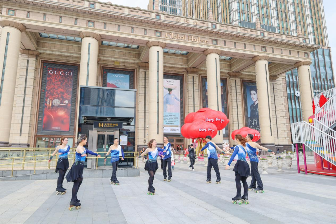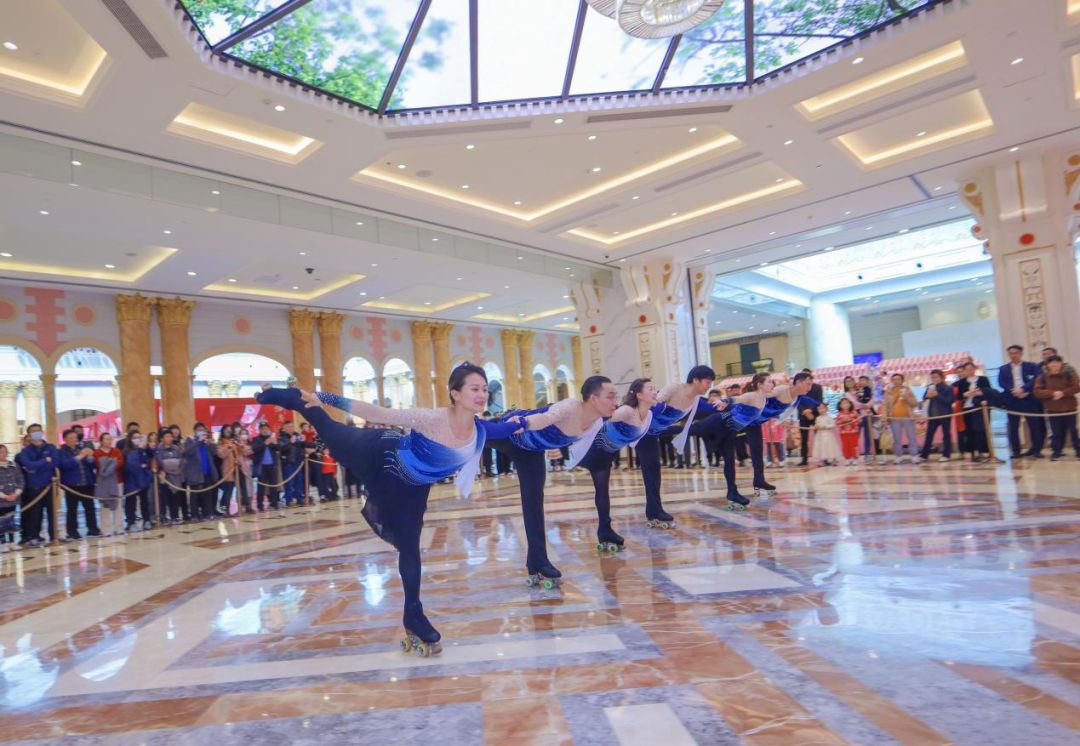 由中国轮滑协会副秘书长、上海市轮滑运动协会副会长赵秋萍领衔的多位亚洲及全国冠军级选手,在环球港内外演绎精彩的花滑秀,充分展示体育与艺术融合的动感魅力。