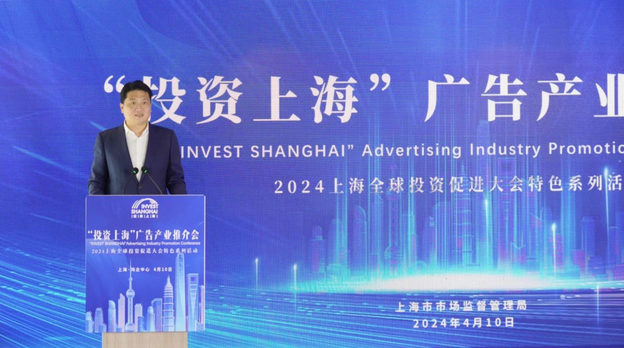 4月10日,2024年“投资上海”广告产业推介会在普陀区数字广告园区召开。上海市市场监管局党组书记、局长倪俊南,普陀区委书记姜冬冬出席并致辞。上海市市场监管局总工程师周群,普陀区副区长王珏,上海市广告协会会长杜贵根出席。