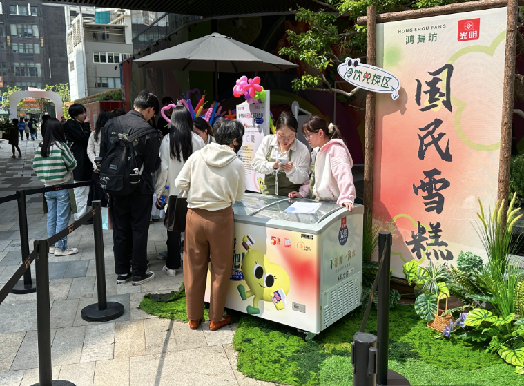 拥有70多年历史的国民雪糕品牌光明冷饮,作为活动的冠名赞助方,也在现场设摊,助力漫步冰爽体验,呈现老字号品牌的国潮焕新。同步在中心广场上演的“见面吧”音乐节更是吸引了不少市民驻足围观。