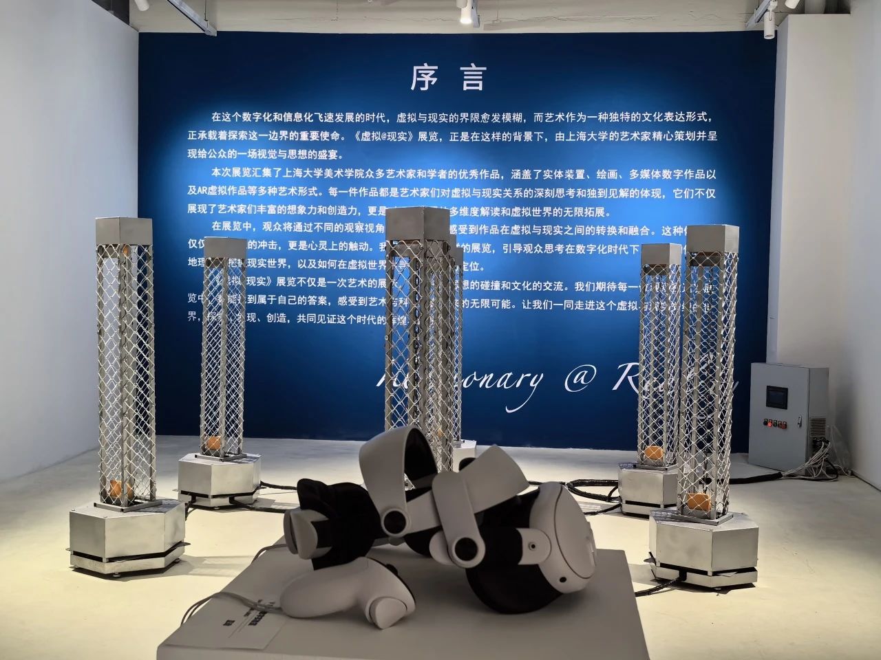 “展览的核心在于互动体验,观众将通过不同的观察视角和参与方式,感受到艺术作品在虚拟与现实之间的转换和融合。”上海大学美术学院数码交互专业研究生李政钟是此次展览的策展人,他介绍称,这种独特的体验不仅仅是视觉上的冲击,更是心灵上的触动,引导观众在数字化时代下重新思考人类与现实世界的关系,以及在虚拟世界中的自我定位。