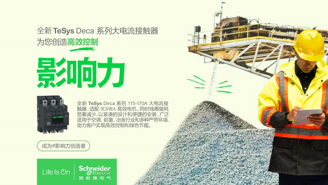 10月24日,施耐德电气发布全新TeSys Deca大电流接触器,这一产品将开启电机绿色高效新纪元。时间倒回5个月前,施耐德电气TeSys控制与保护类产品100周年庆典暨5亿台产品下线仪式在上海普陀工厂成功举办,如今TeSys Deca大电流接触器的亮相,是产品迭代升级的时代回应,更展现着公司的创新实力和对技术进步的承诺。