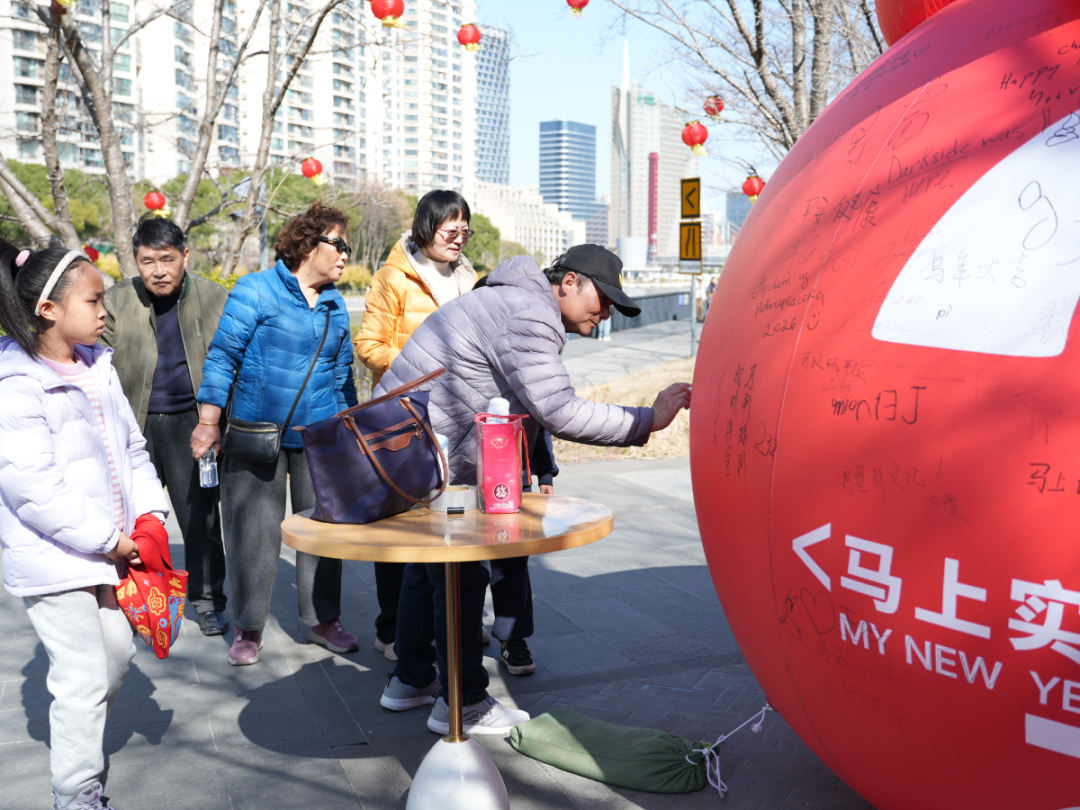 2月23日,春节假期进入最后一天。步入莫干山路艺术街区的滨河步道,红色的心愿球正在微风中轻轻摇曳。球面上,“‘马’住幸福”“平安健康”“马上都实现”的祝福语,写满了人们对丙午马年的美好期许。