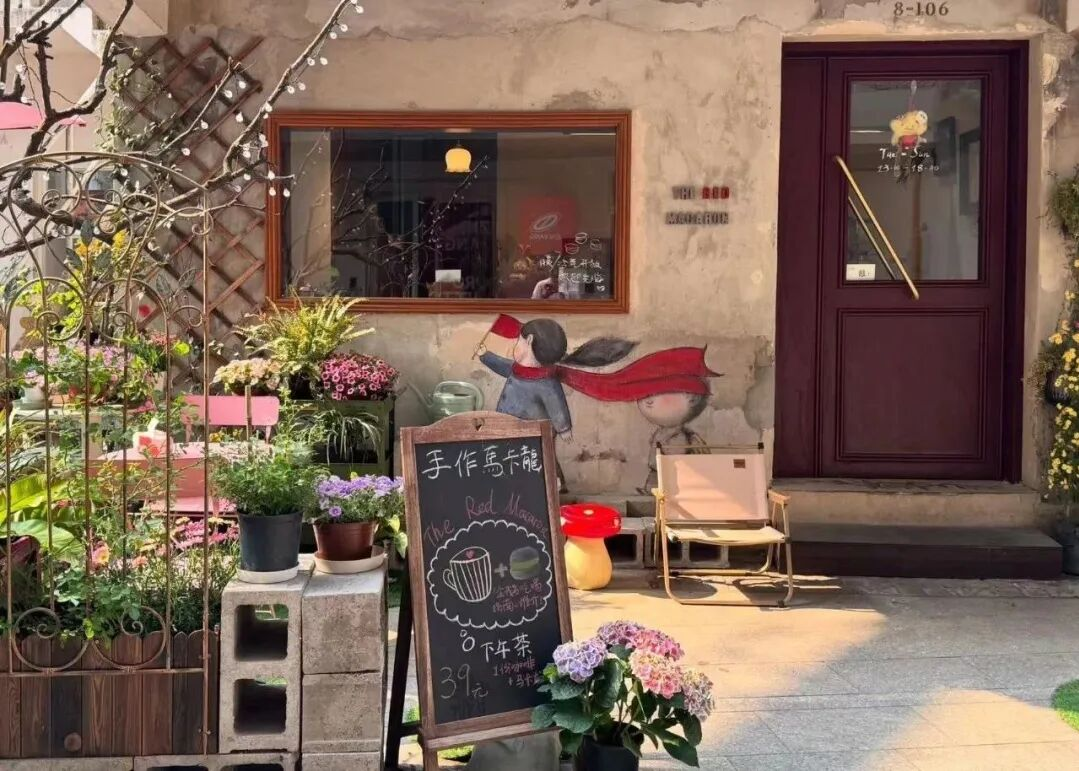 但这里也并非只对专业人士开放的艺术飞地,而是集聚了形态多样的店铺,为市民游客沉浸式体验艺术氛围和休闲乐趣提供丰富选择。例如,藏身22号楼三楼的Nodcafe唱片主题咖啡店,用三四千张黑胶唱片为顾客提供“咖啡+音乐”的双重体验;PEARLONA大客厅将画廊、设计师品牌店与珠宝展示厅融为一体,顾客可以在约一米高的展柜前亲手试戴原创珍珠饰品;由老水塔下仓库改造而来的THE RED马卡龙店铺,用九年只卖一种甜品的专注,诠释着另一种“艺术创作”。