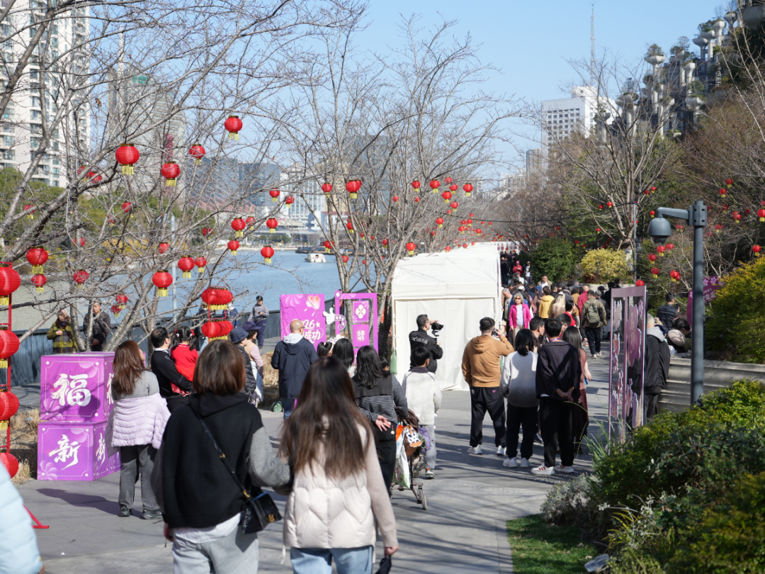 新春市集最后一天,红色的心愿球还在滨河步道上轻轻摇晃。苏州河静静流淌,艺术与商业、水岸与街区,正在这片“小而美”的空间里,被更紧密地编织在一起。
