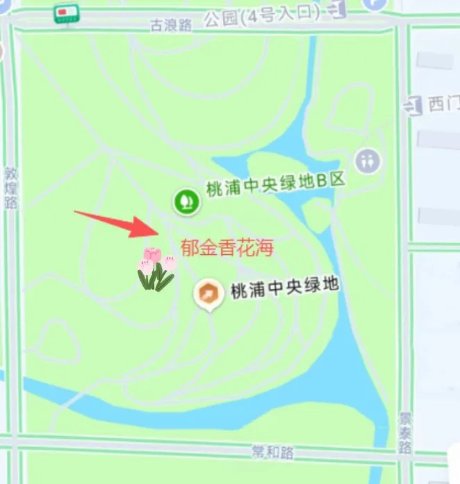 具体路线:可导航至敦煌路和古浪路的交叉口,从开放式绿地的任意入口进入即可
