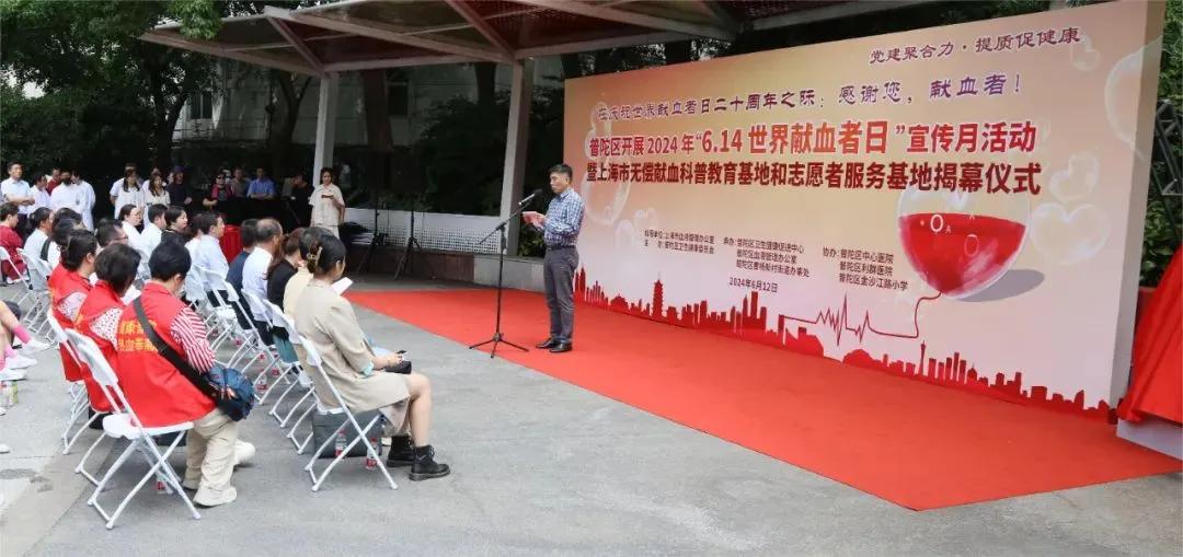 为庆祝“6.14世界献血者日”二十周年,感谢无偿献血者的无私奉献,进一步加强无偿献血科普教育与志愿服务工作,倡导健康适龄人群积极参与无偿献血,6月12日上午,普陀区开展 2024 年“6.14 世界献血者日 ”宣传月活动暨上海市无偿献血科普教育基地和志愿者服务基地揭幕仪式。