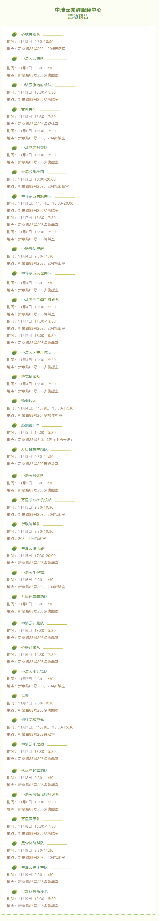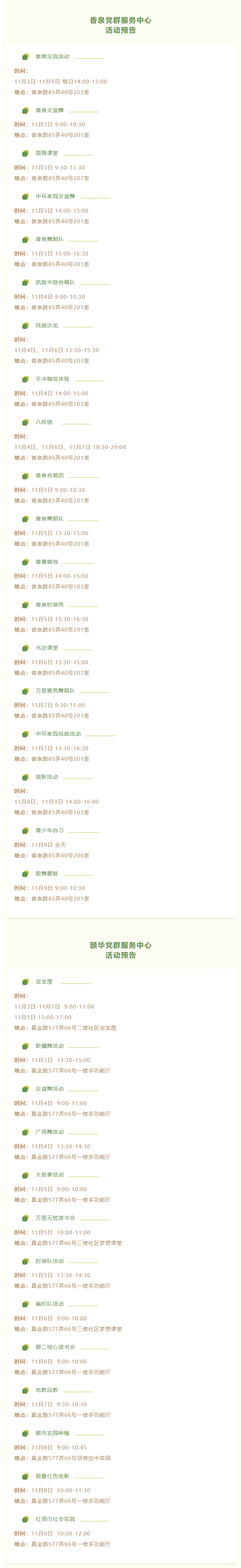 预告丨中浩云、香泉、颐华党群服务中心本周活动提前知道→