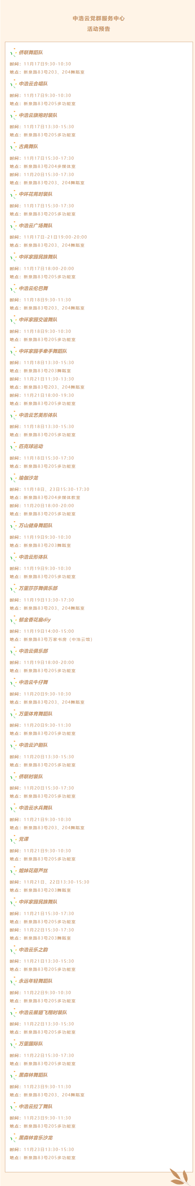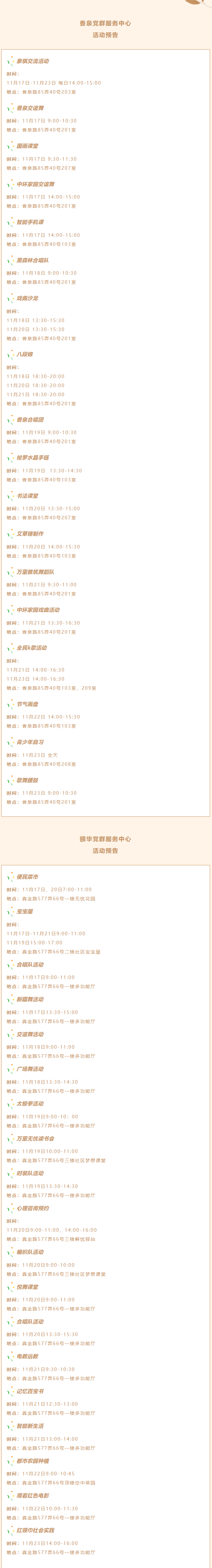 预告丨中浩云、香泉、颐华党群服务中心本周活动提前知道→