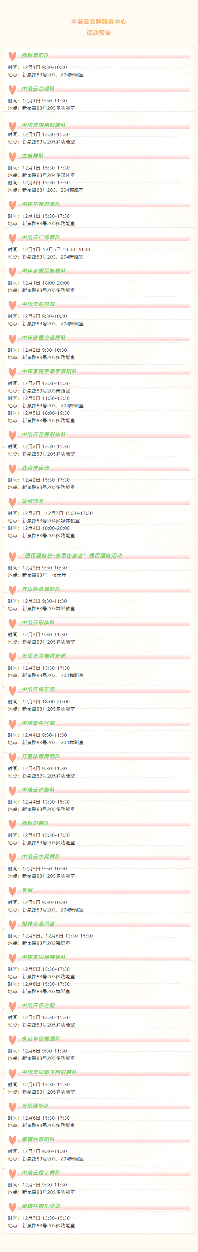 预告丨中浩云、香泉、颐华党群服务中心下周活动提前知道→