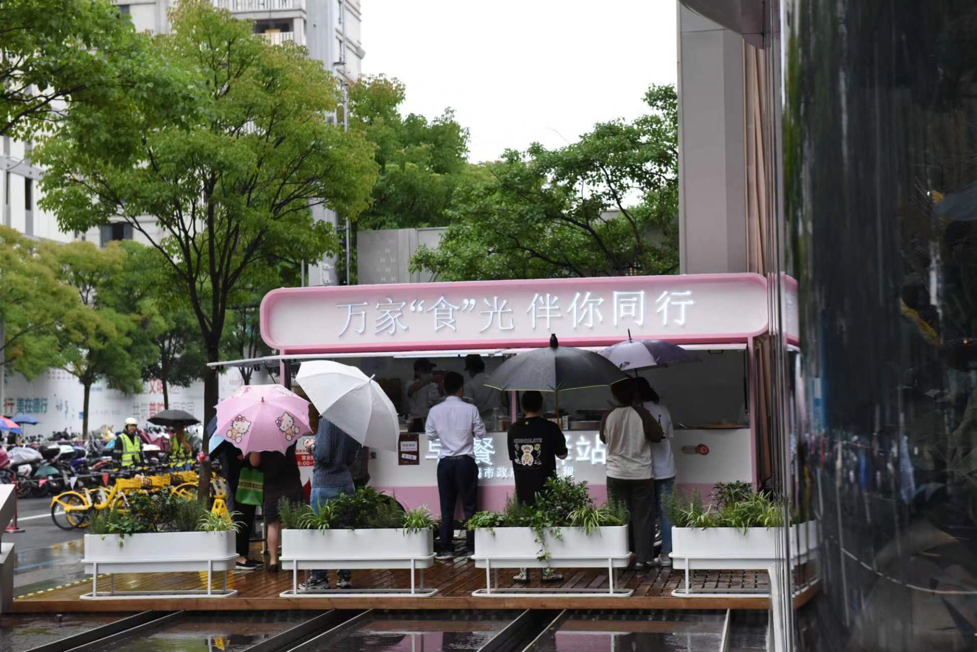 万里街道始终把不断满足人民日益增长的美好生活需要作为基层治理的出发点和落脚点,积极践行全过程人民民主,在党群服务站增设了“万里‘食’光 伴您同行”便民早餐车,为周边居民解决上学上班最后百米的便民问题。同时利用建筑体特殊构造,打造集早餐、“比邻”咖啡、下午茶全天候的室外休憩空间,让市民群众都进得来、坐得下,感受万里美好生活。