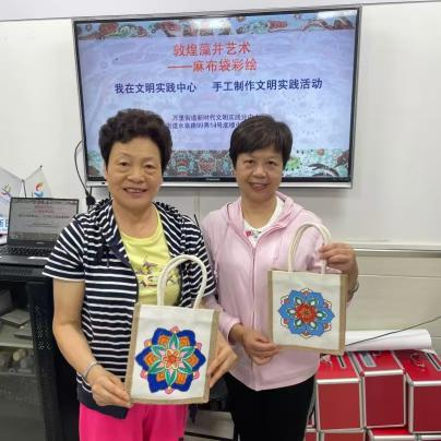为了营造崇德向善、文明和谐的新风尚,万里街道新时代文明实践分中心开展“敦煌藻井艺术-麻布袋彩绘”手工制作文明实践活动。老师深度解析了敦煌藻井艺术的配色奥秘与深层寓意,让参与者们深切感受到中国传统文化的浩瀚与精深。在创作环节,从调色到配色,老师鼓励居民们发挥创意,各自展现个人艺术风格,实现了文化传承与创新的完美融合。活动还增添了“色彩接力”互动环节,让居民们在轻松愉快的氛围中交流调色心得,增进相互间的了解,扩大“朋友圈”,提升邻里情,让居民在家门口享受美好非遗传习“小时光”,展现文化“大自信”。