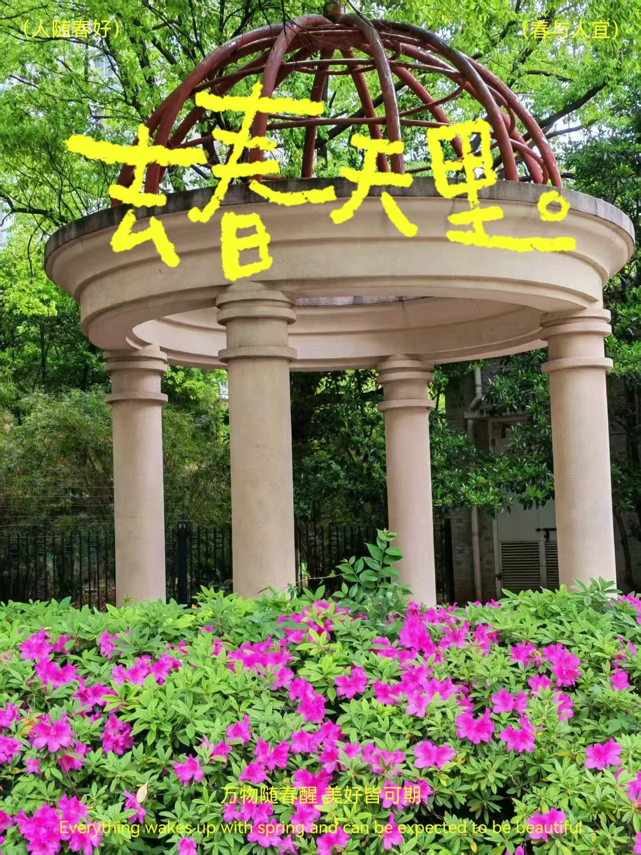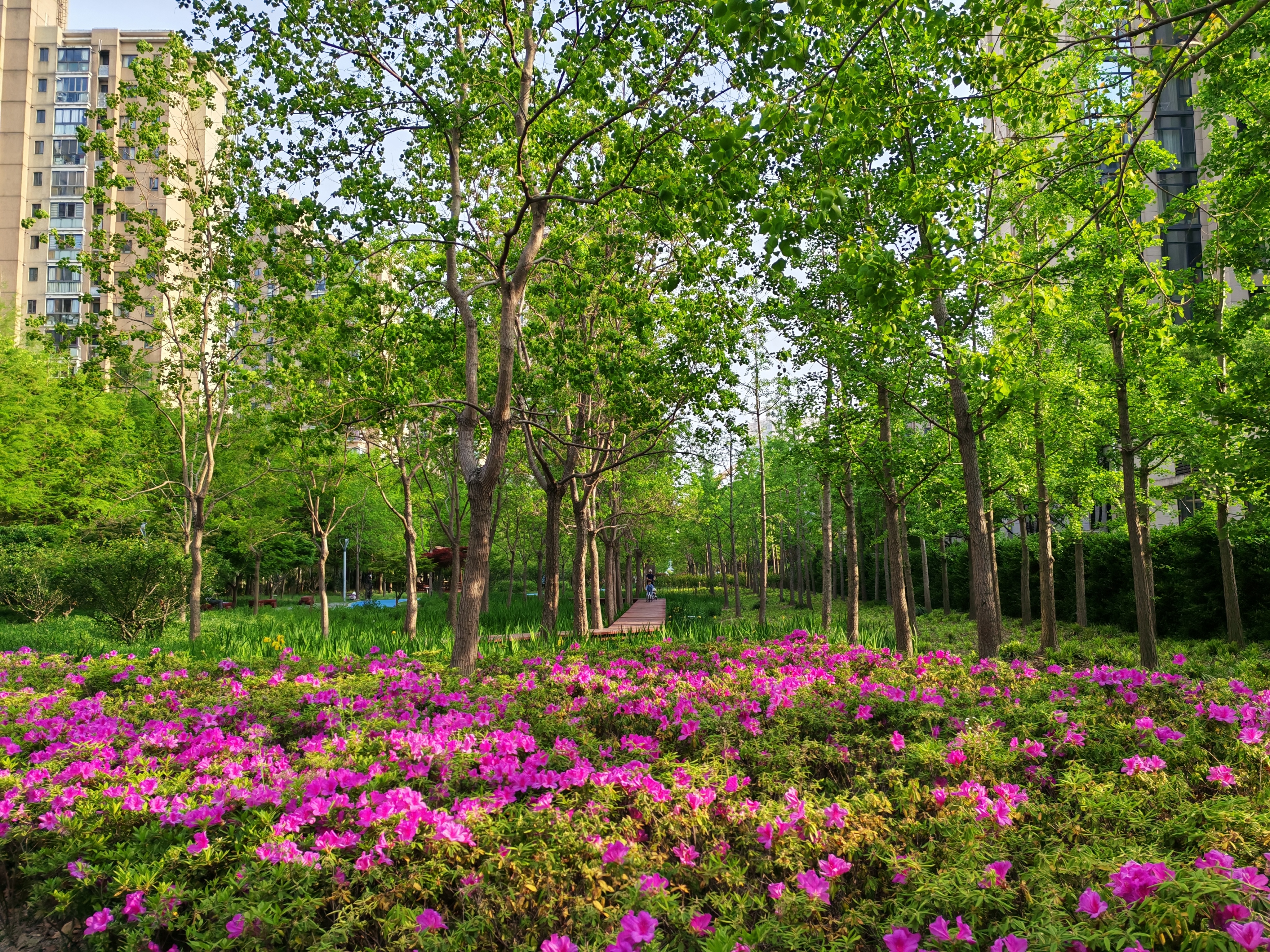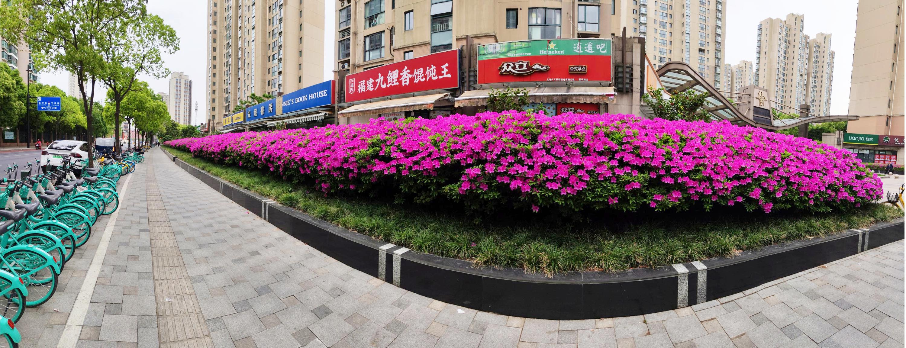 杜鹃花在中浩云街区簇簇盛开,一片生机盎然,为这条道路地披上了一袭华丽的彩衣。阳光透过花丛洒落,春日斑驳的光影在树枝上跳跃,与中浩云党群服务中心、万家书房等宜居宜业的生活场景交织成一幅动人的画面。