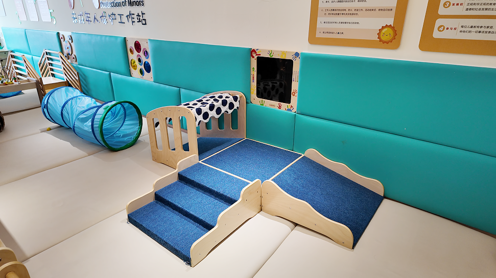 走进宝宝屋,温馨舒适的氛围扑面而来,柔软的爬行区域、趣味十足的探索玩具、色彩明快的攀爬设施,每一处都透着对孩子成长的细致关怀。不同于传统托育机构的知识灌输,这里没有整齐划一的指令,没有必须完成的“学习任务”,取而代之的是充分的自由与尊重。育婴师周姗介绍:“我们为宝宝们准备了丰富的玩具教具和适配年龄的活动,比如用绘本引导观察倾听,用音乐刺激听觉发育,从多感官维度帮助孩子建立与外部世界的联系,但全程坚持不干预,让他们按照自己的节奏探索。”