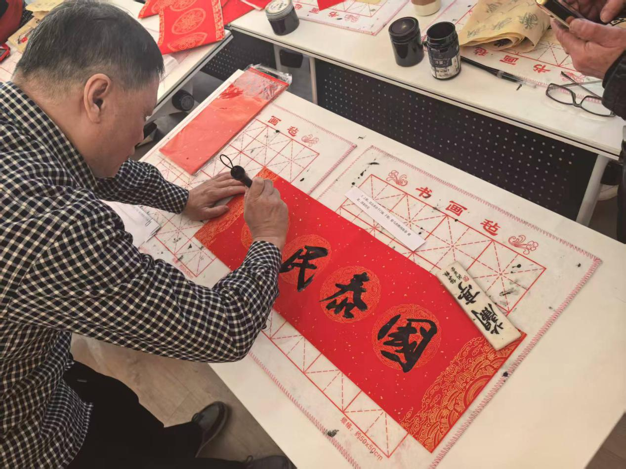 一幅幅寓意吉祥、饱含法治理念的春联在笔尖流淌而出,红色的春联纸随风轻扬,法治元素与新春祝福巧妙融合,让“学法、懂法、守法、用法”的理念以生动鲜活的形式走进居民生活。