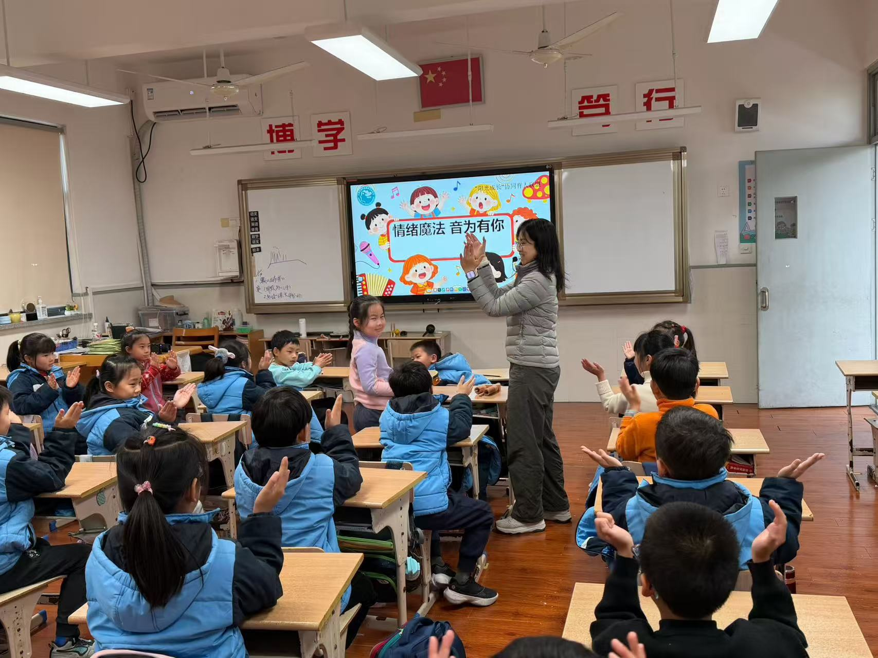 “音乐是直达心灵的语言,对低年级孩子而言,用音乐感知情绪、表达情绪,比单纯的道理说教更有效。”正如本次授课的普陀区精神卫生中心社区防治科张戎文老师所说,活动不仅帮助孩子们初步掌握了简单有效的情绪调节策略,提升了心理韧性,更在互动合作中增强了班级凝聚力与同伴支持感,实现了“心理健康科普+艺术熏陶+社交成长”的多重赋能。