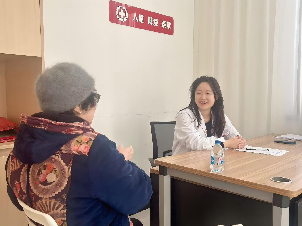 不同于医院门诊的忙碌节奏,没有冰冷的诊疗仪器,服务现场只有青年医学生温和的笑容、细致的解答,一张桌子、几把椅子,便搭建起一座连接专业服务与居民需求的“暖心桥梁”。居民们带着健康困惑驻足咨询,与青年医护面对面交流,氛围轻松而温暖。