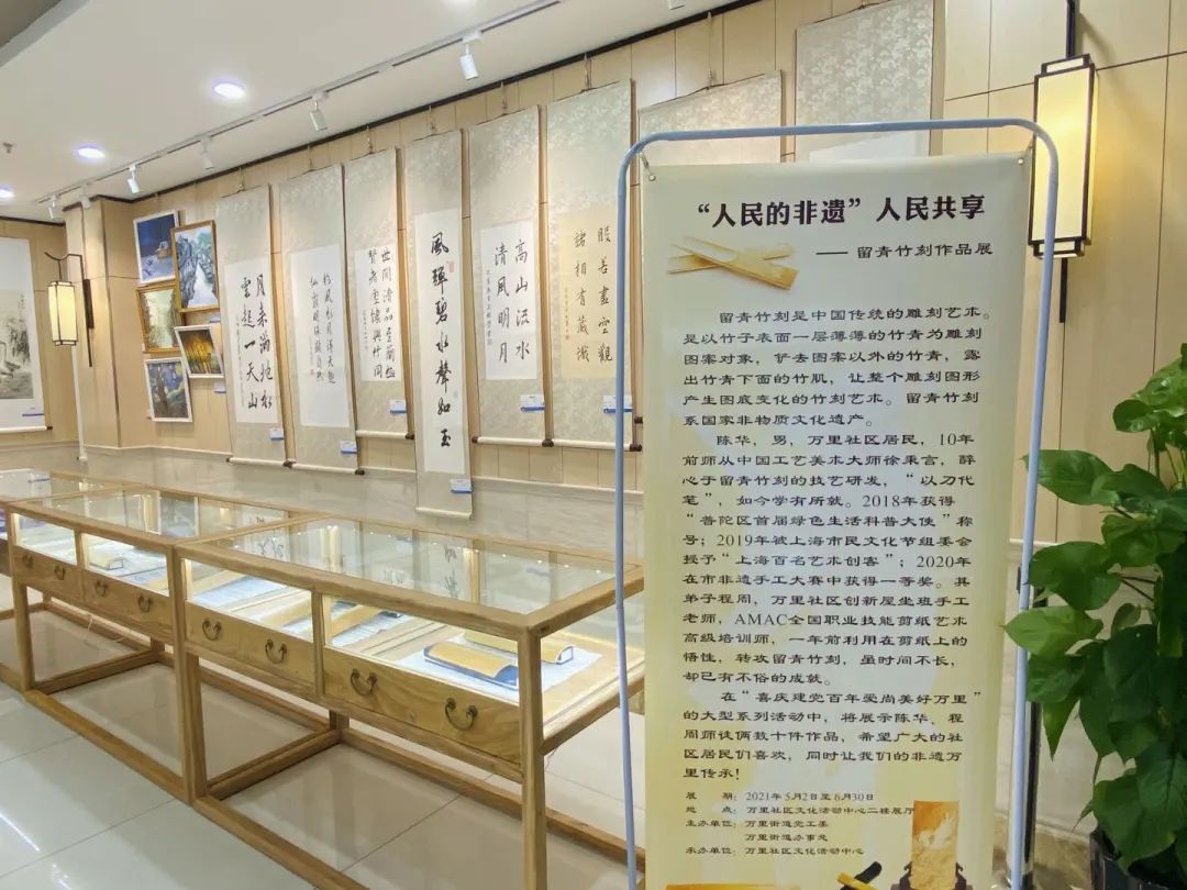 文化如水,润物无声;文脉如流,绵延不绝。为进一步提高人民群众非遗保护意识,提升非遗可见度、美誉度和影响力,实现人民的非遗,人民共享,在“文化和自然遗产日”到来之际,万里社区文化活动中心内展出了非遗文化留青竹刻相关作品。
