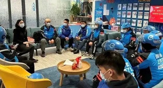 在普陀区近铁城市广场南座B2层,有一个占地面积近1500平方米,拥有“红色”内核的“近铁e站”党群服务站,是全国首个集楼宇企业党建、工会服务、网络监管服务、外卖骑手驿站、企业员工共创为一体的党建工会服务共享空间。它不仅服务楼内白领,也对活跃在周围的外卖小哥们十分友好——冷可取暖、热可纳凉、渴可喝水、累可歇脚,已然变成了外卖小哥心中的“临时小家”和“温馨港湾”。