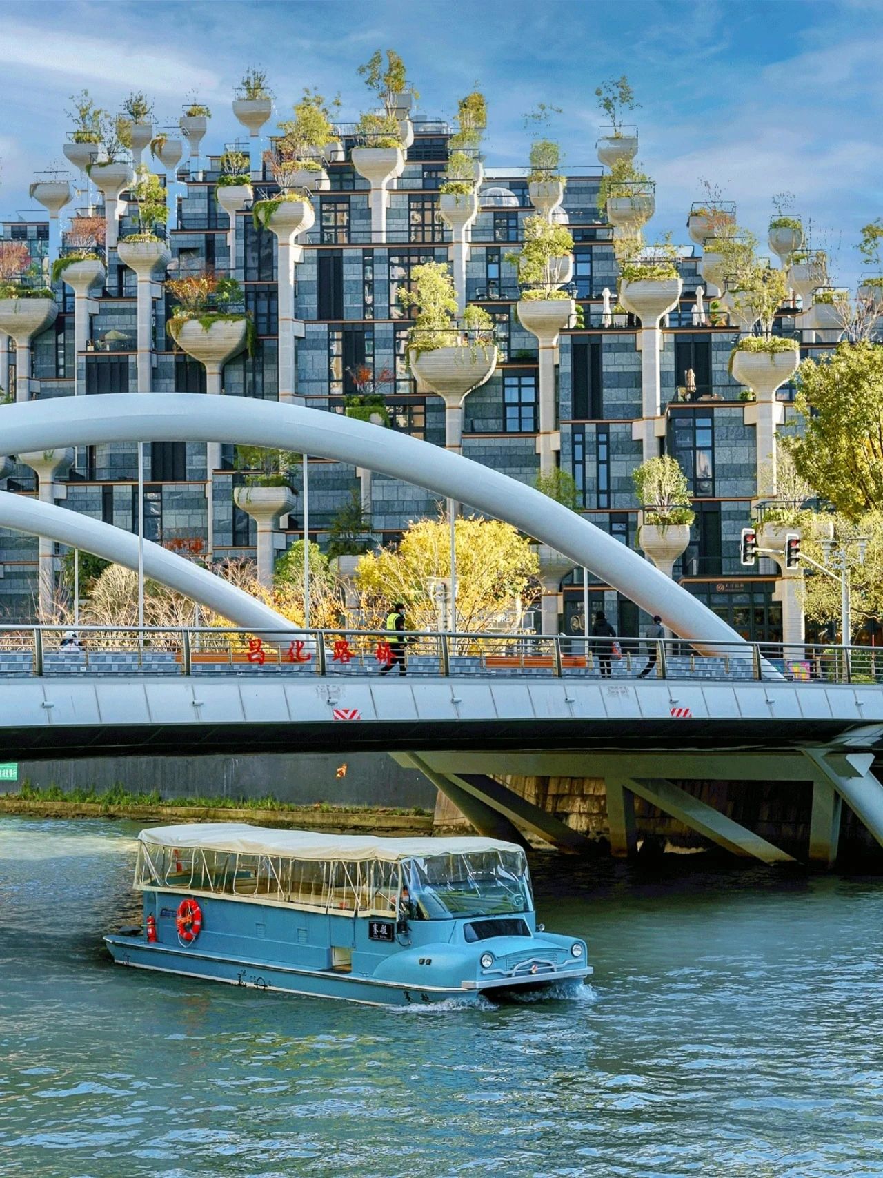 两艘主题“痛船”持续航行于苏州河上。每日四班的航次往返于长风公园与外滩源之间,90分钟航程串联梦清园、华东政法大学等文化地标。