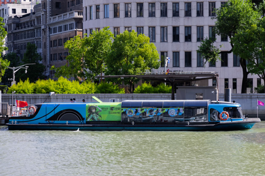 普陀区的五个游船码头设置了动漫IP打卡立牌,游船也进行了精心的美陈装饰,让游客能感受不同动漫主题场景的独特魅力。