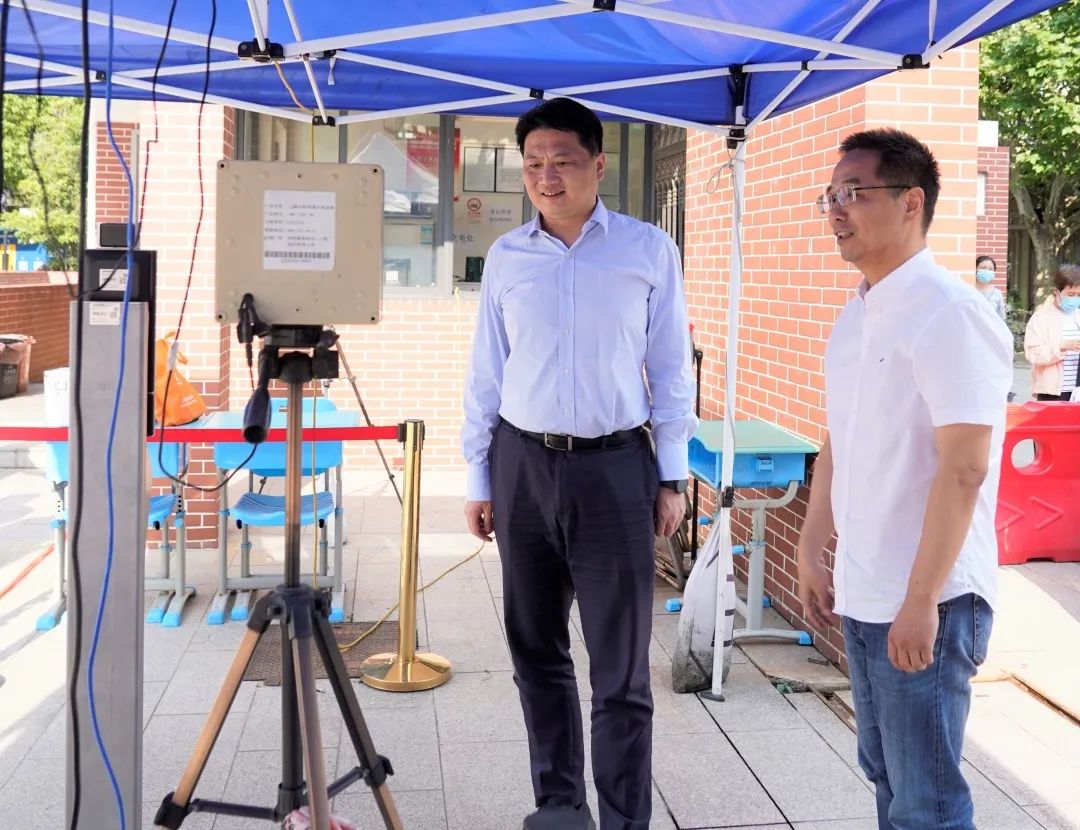 随后,在曹杨第二中学和曹杨中学,姜冬冬穿过智能安检门,走进考场、备用考场等地,实地察看考生安检流程、考场设置、考务组织、安全保障等工作准备情况。“明后两天可能会下雨,防滑措施都准备好了吗?”姜冬冬指出,各考点负责人要提前做好安检入口测试,确保精准快捷,让考生尽快进入考场。同时,一定要加强对考生的关心关爱,带着责任做好考生服务保障工作,助力考生以最佳状态考出好成绩。