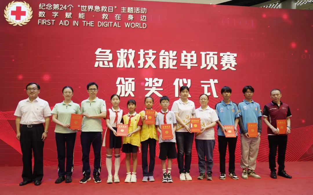 活动现场举行了急救技能单项赛。比赛分为心肺复苏+AED、包扎、骨折固定和搬运、特殊伤处理四类项目。医院组的普陀区红十字人民医院队与普陀区利群红十字医院队、学校组的真如文英中心小学队与宜川中学附属学校队、社区组的长征镇红十字救护队、桃浦镇红十字救护队、新就业人群组的饿了么骑手队与圆通速递队同台比拼。最终,普陀区利群红十字医院队、真如文英中心小学队、长征镇红十字救护队、饿了么骑手队获得比赛胜利。