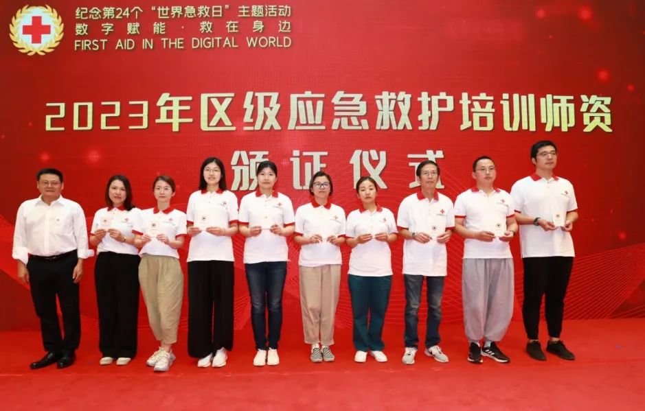 现场,为9名2023年区级应急救护培训师资颁发证书。据悉,普陀区现有活跃在授课一线的注册培训师资40人,每年开展应急救护持证培训2万余人。