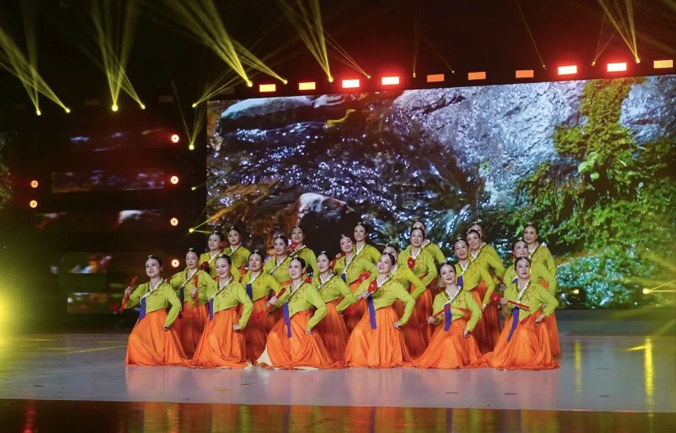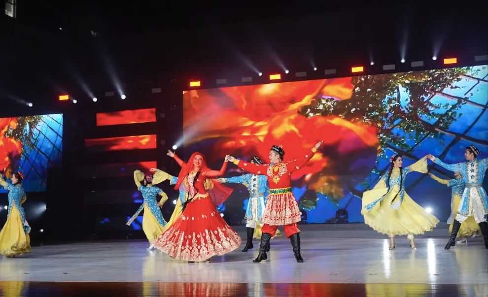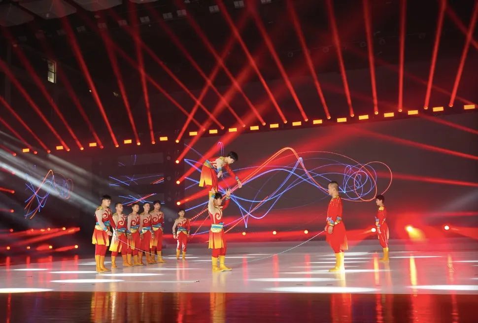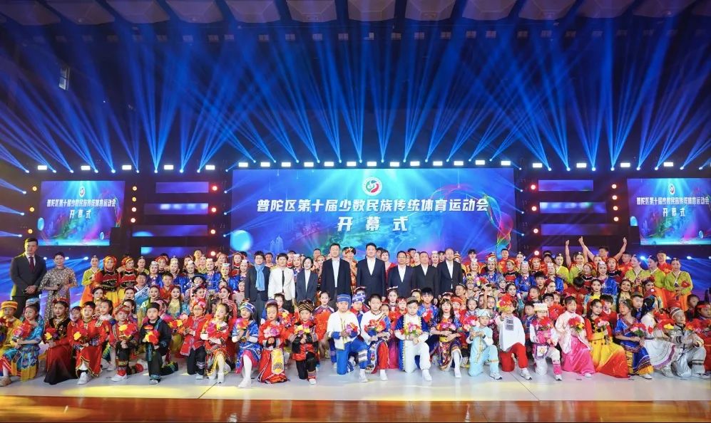 开幕式后,一场以“民族之韵 运动之魅 和谐之美”为主题的文艺演出在运动会主题曲《石榴籽 一家亲》的激昂旋律中精彩上演。各族同胞载歌载舞,尽显中华民族的文化魅力,展现普陀各族人民大团结大融合的良好氛围。演出最后,全场观众起立,挥舞着国旗,齐声高唱《爱我中华》,将现场气氛推向高潮。
