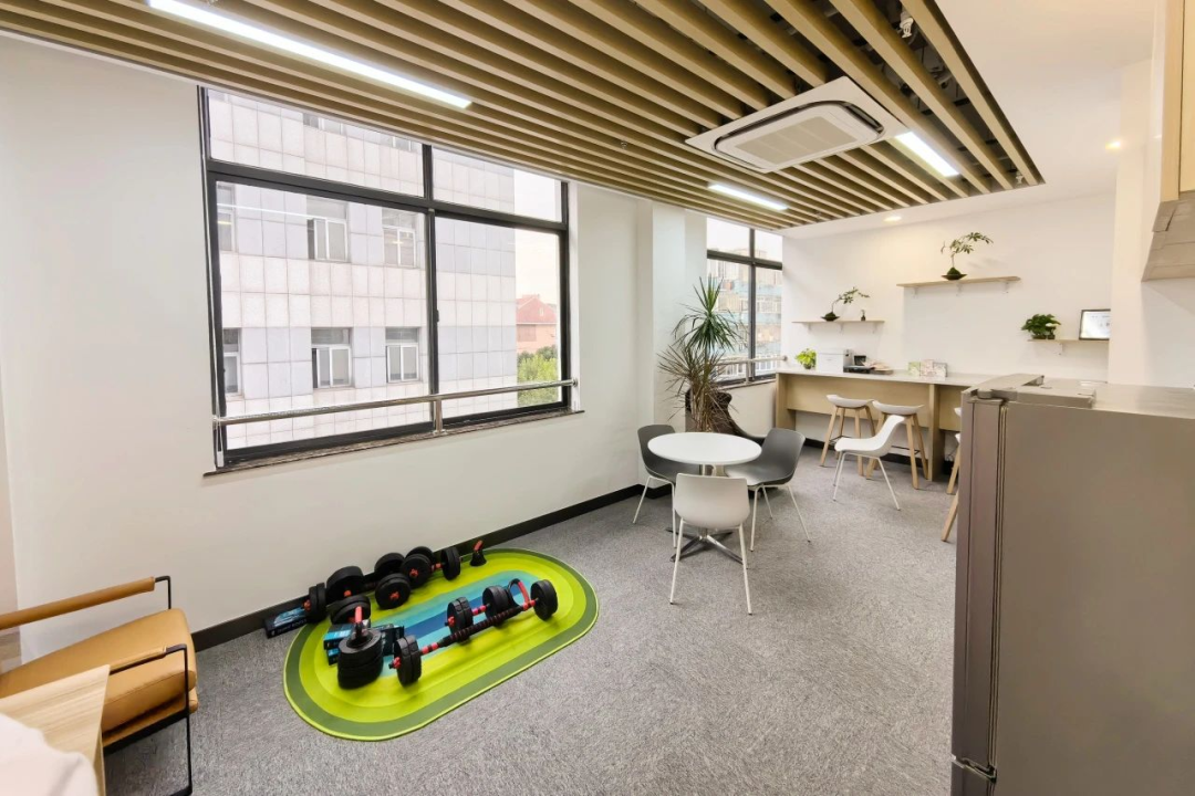 普陀区疾病预防控制中心职工工间休息室位于中心二楼西侧,注重休闲与运动元素打造,配备品种多样的休闲设施和运动设备,为中心职工提供运动健身、心理疏导、午间小憩等功能服务。